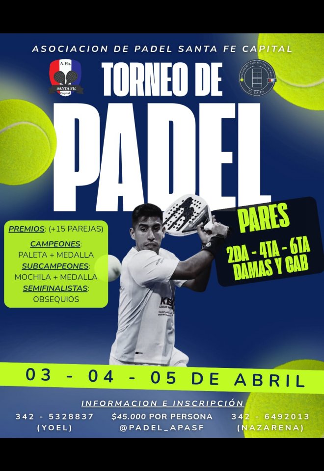 »» Evento: Circuito Oficial Santafesino - Primer Torneo Del Año - Pares »» Localidad: Santa Fe »» Fechas: 02/04/2026 al 05/04/2026