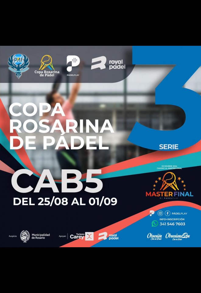»» Evento: Copa Rosarina de Padel Serie3 C5 »» Localidad: Rosario »» Fechas: 25/08/2024 al 01/09/2024