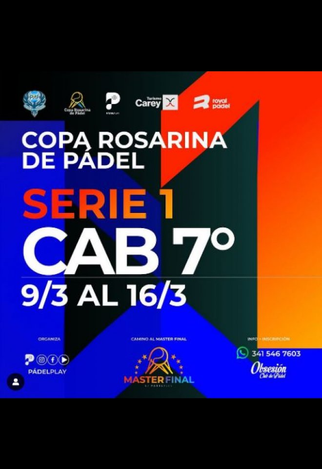 »» Evento: Copa Rosarina de Padel Serie 1 C7 »» Localidad: Rosario »» Fechas: 09/03/2025 al 16/03/2025