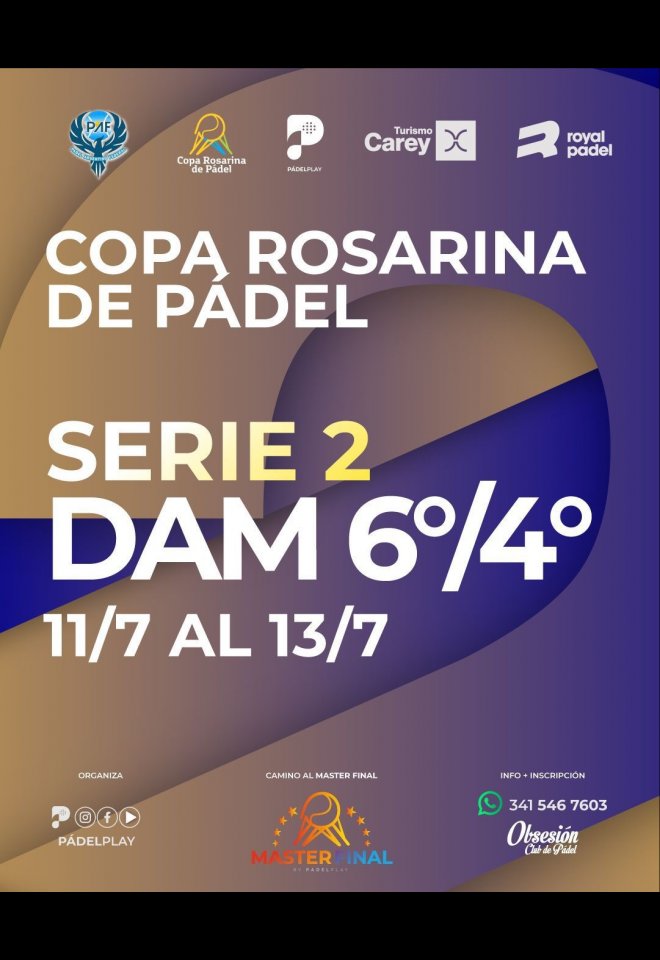 »» Evento: Copa Rosarina de Padel Serie 2 -D6 - D4 »» Localidad: Rosario »» Fechas: 11/07/2025 al 13/07/2025
