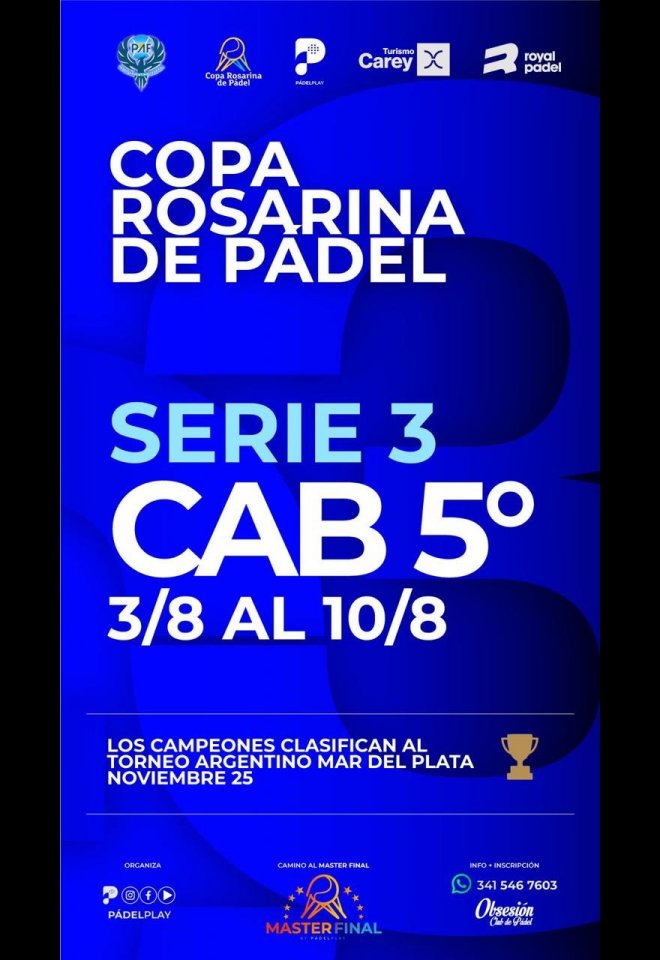 »» Evento: Copa Rosarina de Padel Serie 3 - C5 - Clas. Torneo Argentino »» Localidad: Rosario »» Fechas: 03/08/2025 al 10/08/2025