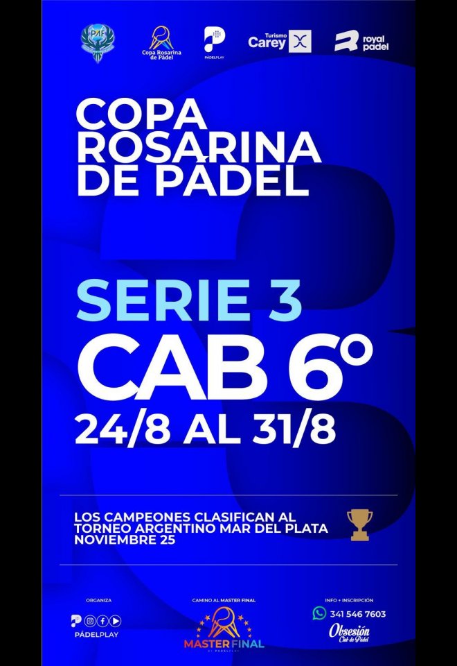 »» Evento: Copa Rosarina de Padel Serie 3 - C6 clas. Torneo Argentino »» Localidad: Rosario »» Fechas: 24/08/2025 al 31/08/2025
