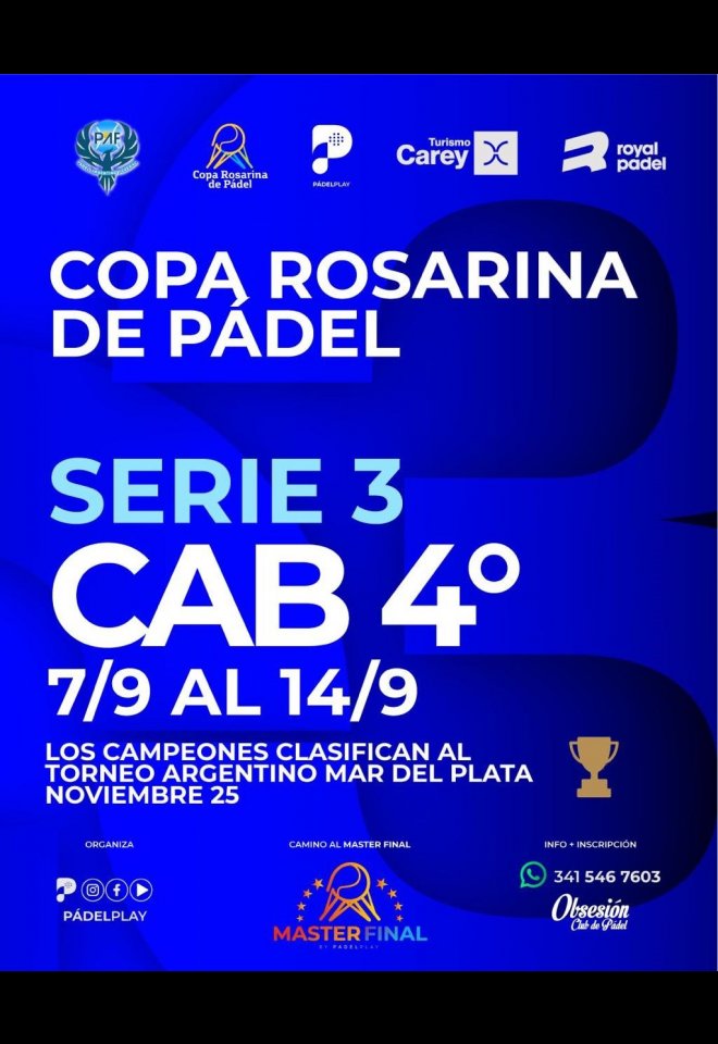 »» Evento: Copa Rosarina de Padel Serie 3 - C4 clas. Torneo Argentino »» Localidad: Rosario »» Fechas: 07/09/2025 al 14/09/2025
